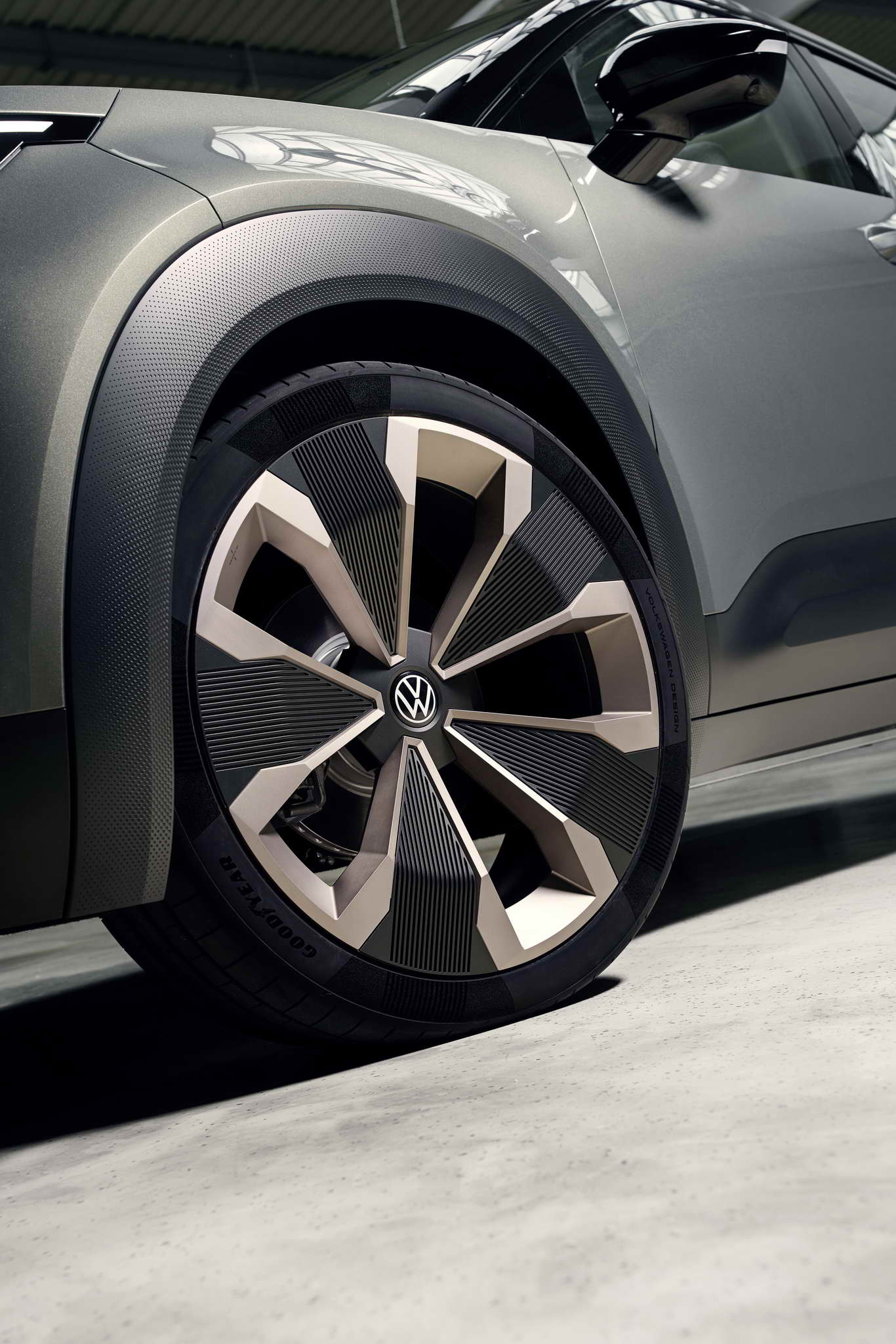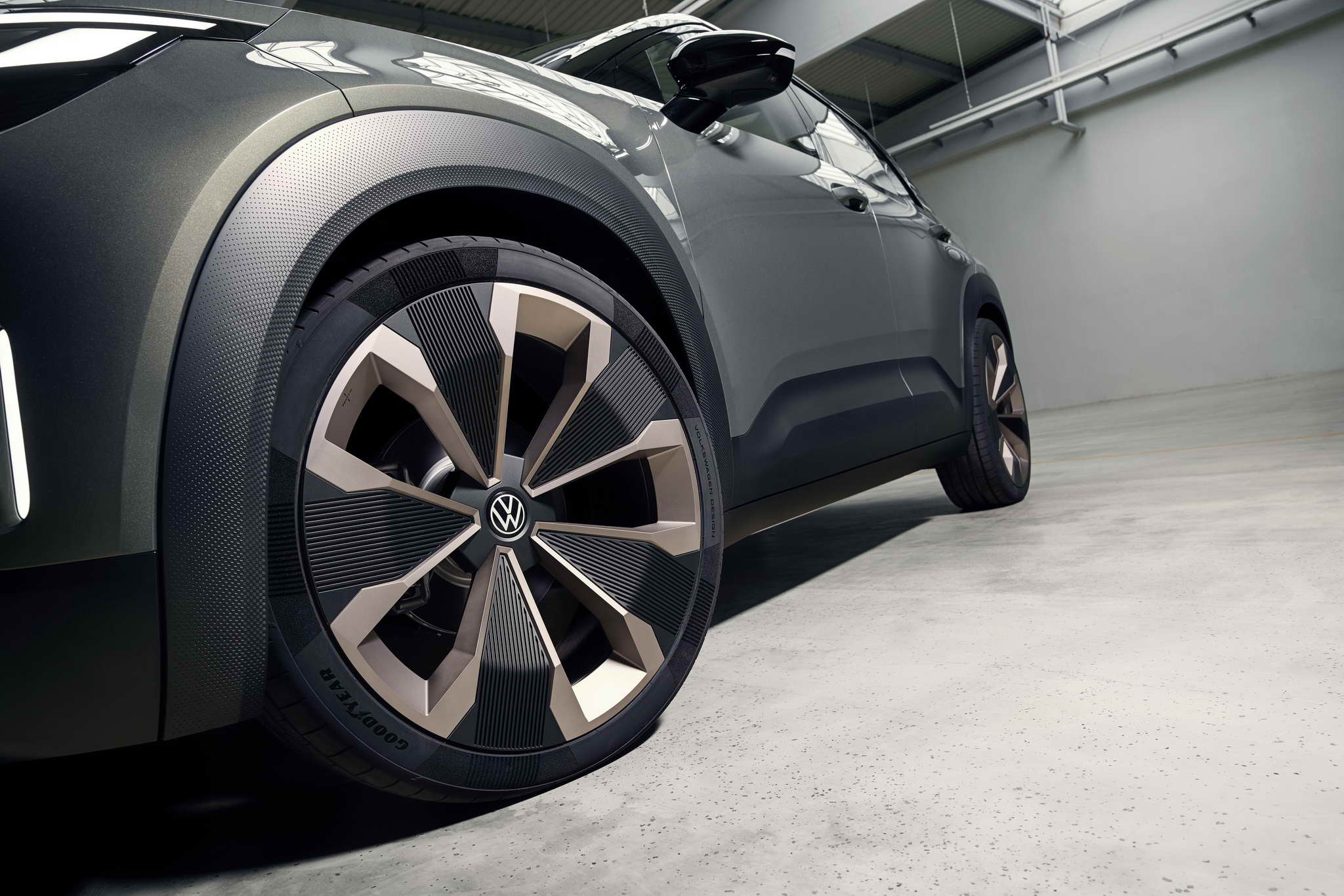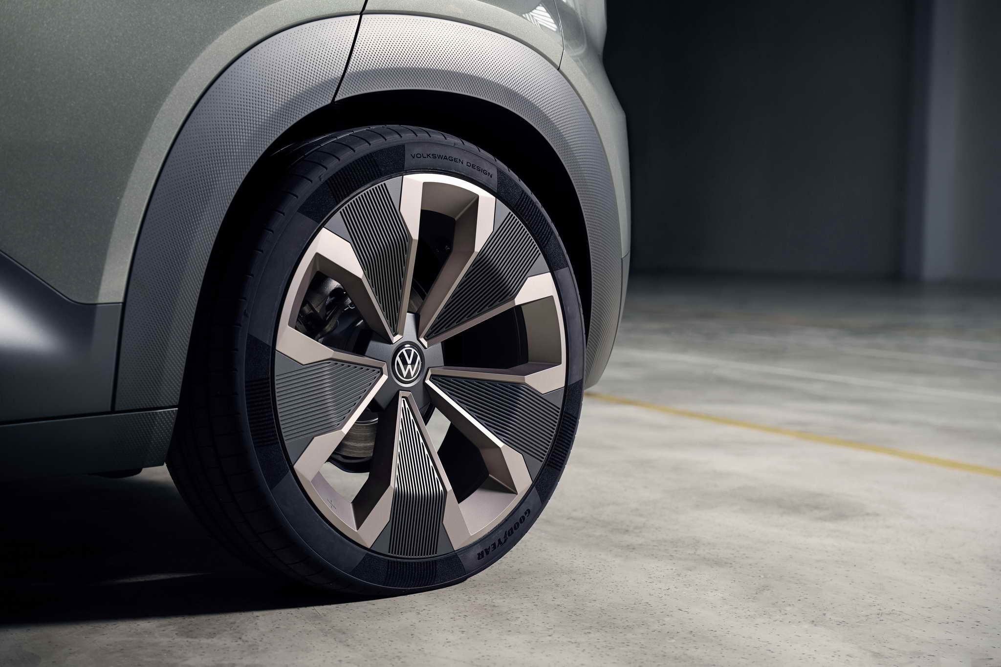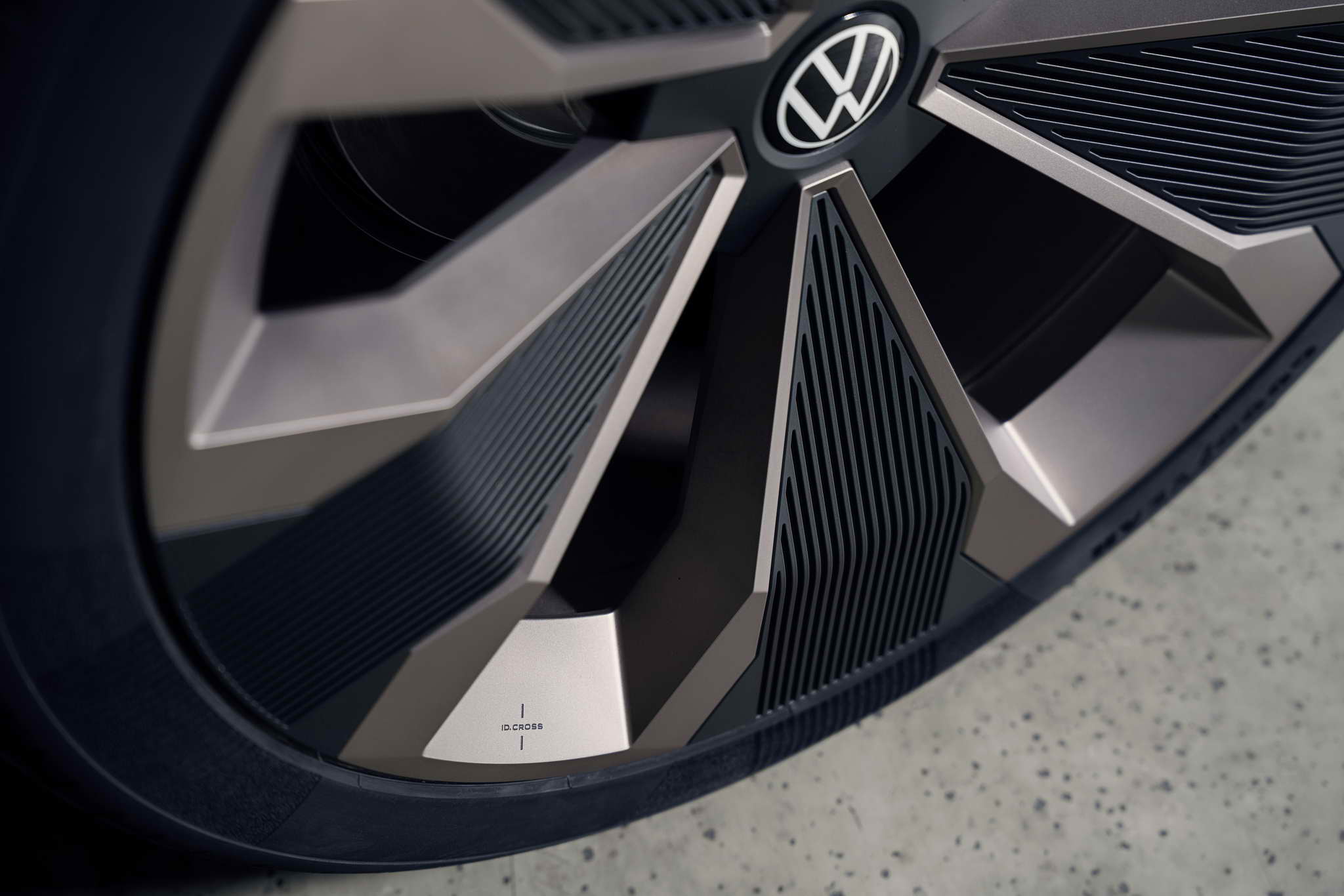 Compact – fits into any parking space. The SUV concept car on show at the IAA MOBILITIY is 4,161 mm long with a 2,601 mm wheelbase. The ID. CROSS Concept is 1,839mm wide and 1,588mm tall. This means that its size is similar to that of the current T-Cross. This does not, however, apply to the wheel/tyre combination on the concept car: The designers have developed a 21-inch alloy wheel specifically for the ID. CROSS Concept called Balboa. In cooperation with Goodyear, special 235/40 R21 tyres were designed for the show car, which continue the design of the rim in the tyre sidewall.