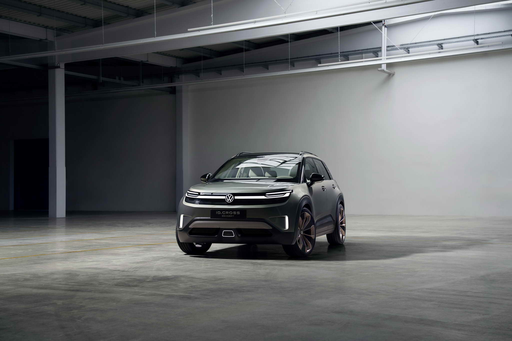 Pure and positive – iconic and likeable. The ID. CROSS Concept, in Urban Jungle green, reflects a new, clear and likeable design language. Volkswagen Head of Design Andreas Mindt explains: „We call our new design language ‚Pure Positive‘. It is based on our three design cornerstones of stability, likeability and secret sauce; it will characterise every new Volkswagen in the future. We rely on a pure and powerful clarity, along with visual stability and a positive, likeable vehicle personality. The lines and powerful surfaces on the ID. CROSS Concept are pure and clear. They shape an SUV that is a trend setter not a trend follower and one that transfers the brand’s identity into the future.“ The ID. CROSS Concept’s positive personality is immediately recognisable in areas such as the front and rear. With their graphics and 3D light signature, they give the impression that the car is ’smiling‘. Andreas Mindt adds: „A Volkswagen must be likeable, unmistakable and inspire with its character. That’s why we deliberately evoke Volkswagen icons such as the Golf and the VW bus in the ID. CROSS Concept – on top, as a dash of ’secret sauce‘. This can be seen, for example, in the charismatic C-pillars and the completely straight window line. Few volume brands in the world can draw on such a strong heritage. And that will always be in in our toolkit on our journey into the future.“