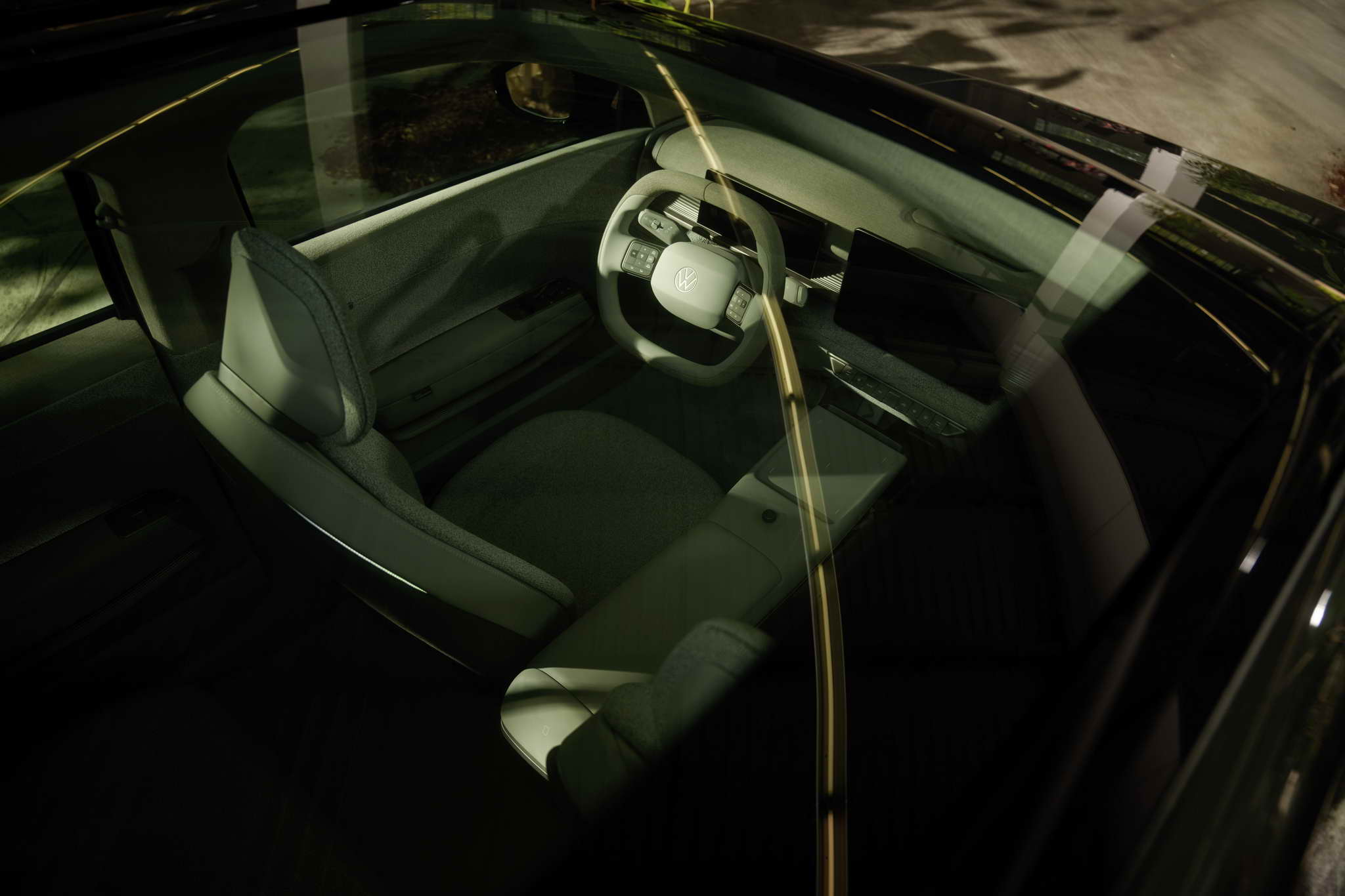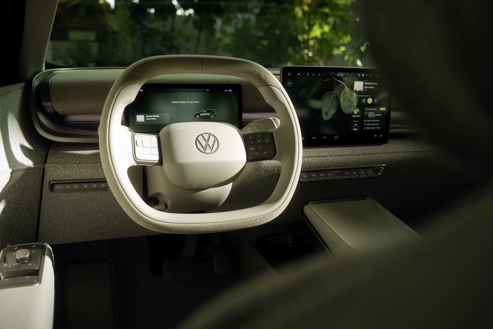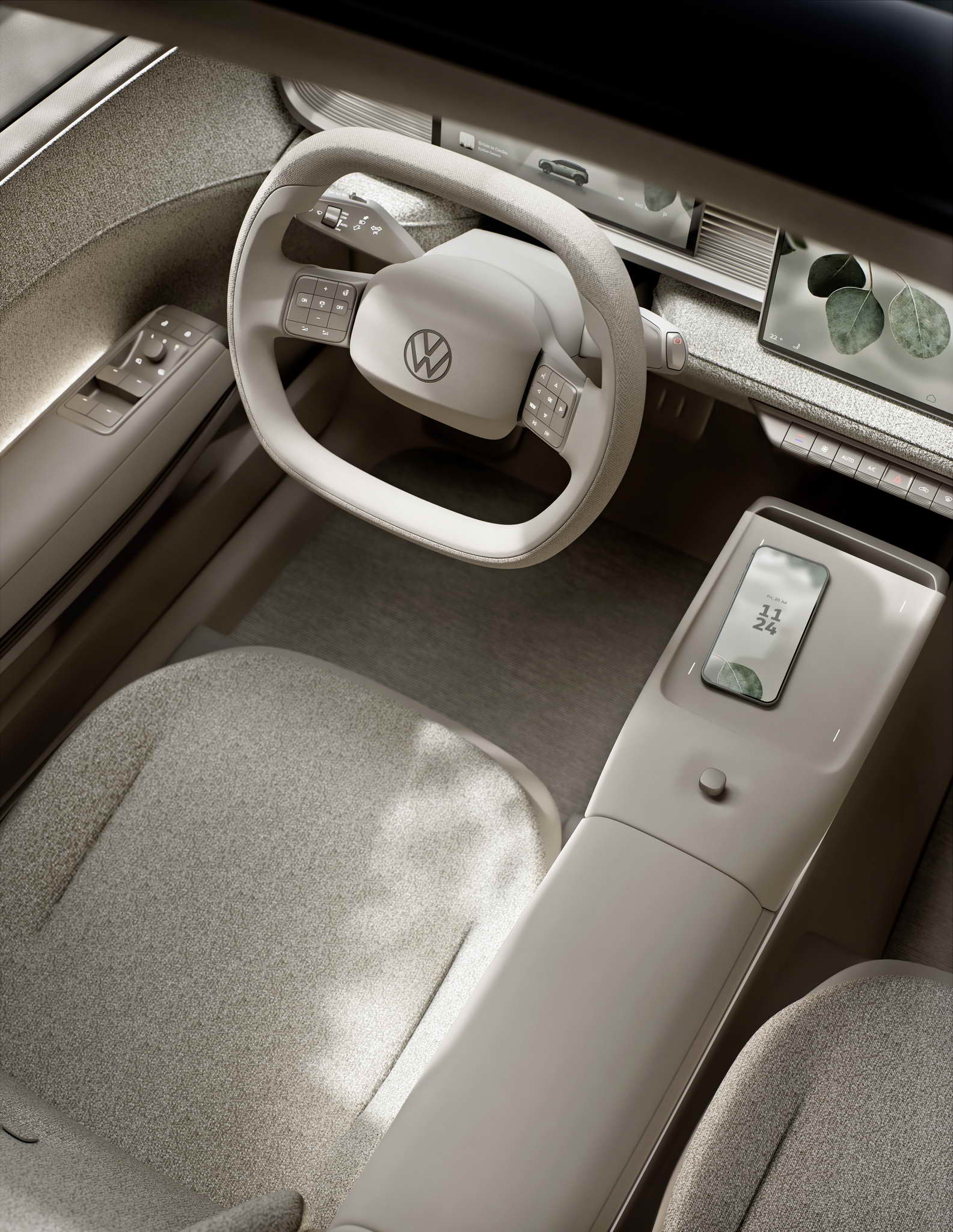 Plant motifs on the screens and real plants in the visually floating centre console enhance the feel-good effect. A further highlight is the specially designed seats in the concept car that can be folded down completely to create a reclining area in the style of a VW Bus.